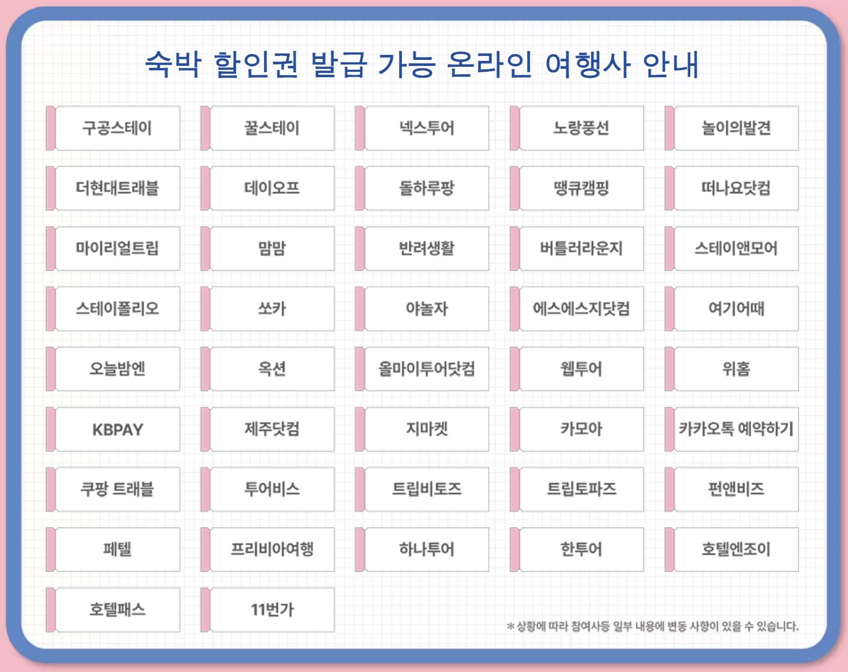 숙박 할인권 발급 가능 온라인 여행사 안내